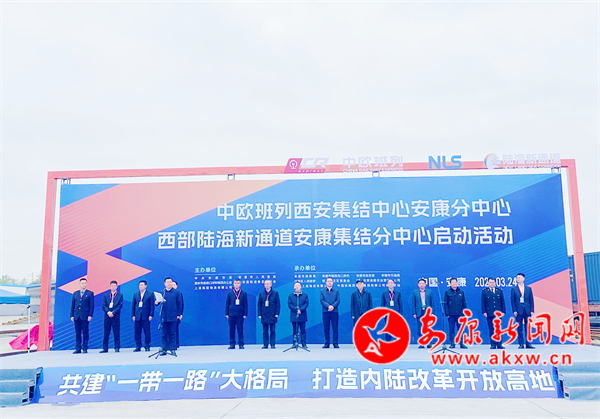 會前,中歐班列西安集結(jié)中心安康分中心、西部陸海新通道安康集結(jié)分中心舉行了啟動活動。西部陸海新通道安康鐵海聯(lián)運首趟列車與"安西歐"中歐班列同步發(fā)車。