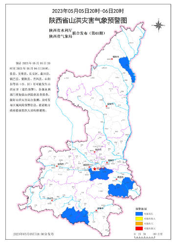 5月5日18時44分,陜西省水利廳與陜西省氣象局聯(lián)合發(fā)布山洪災(zāi)害氣象預(yù)警: