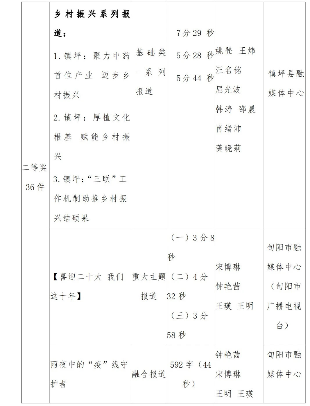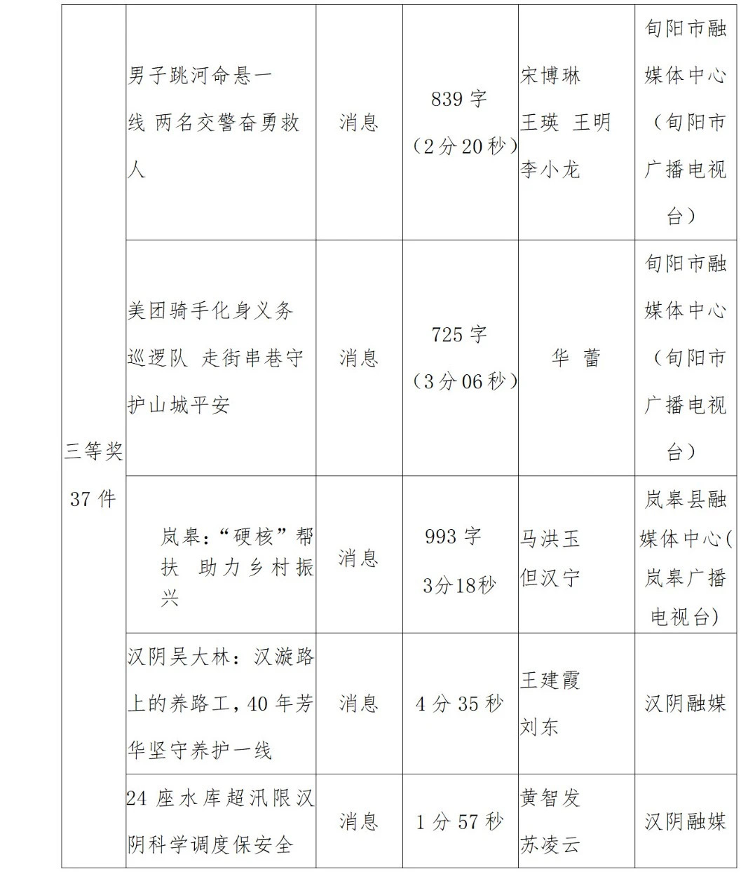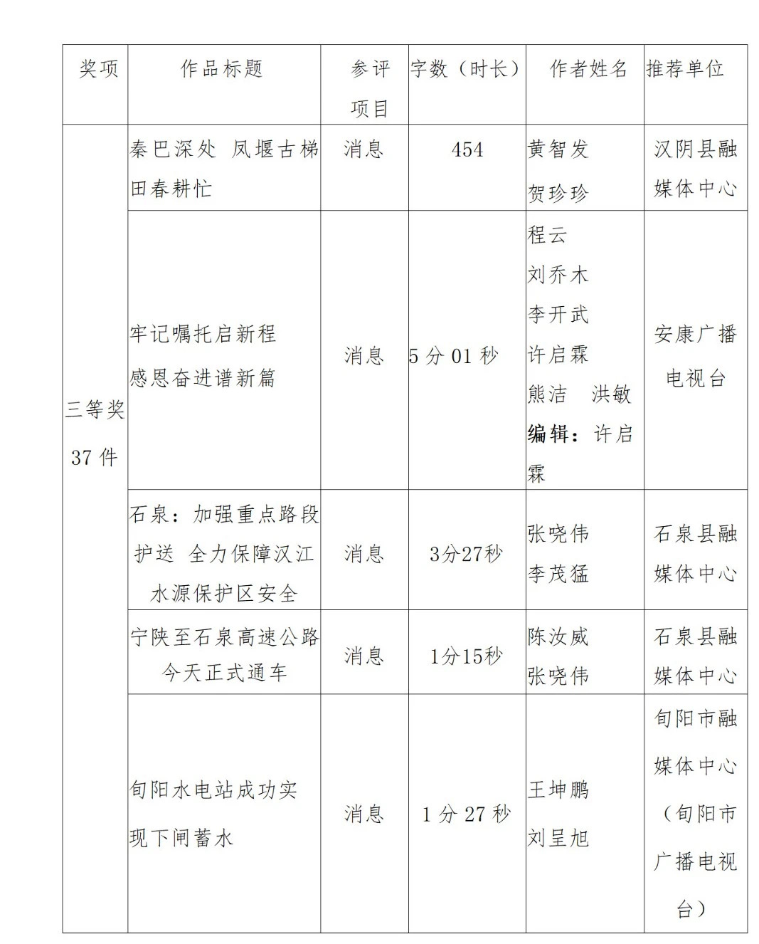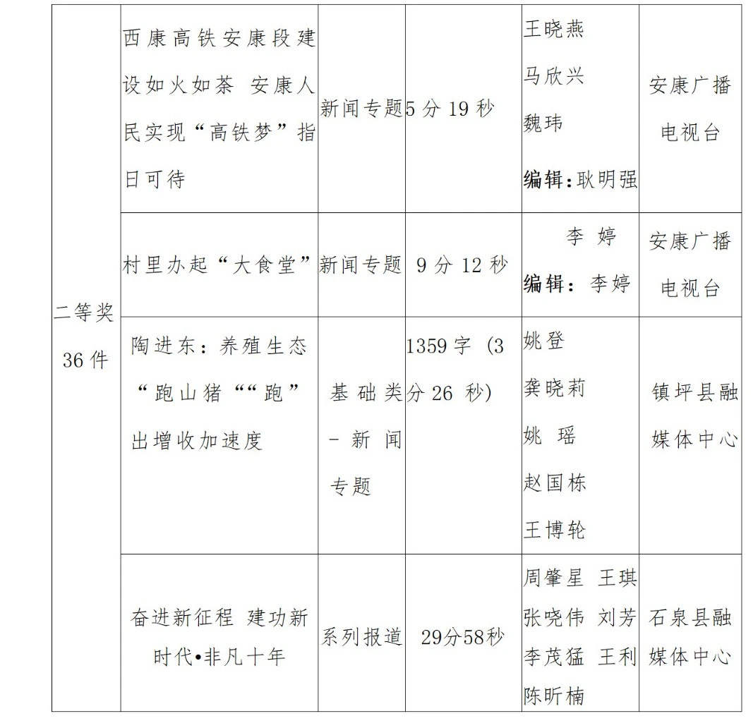 2022年度安康新聞獎評審工作在中共安康市委宣傳部的指導(dǎo)下,由市記協(xié)具體組織實(shí)施,經(jīng)過各申報(bào)單位推薦、初審,市記協(xié)復(fù)審并組織專家定評,評選出擬獲安康新聞獎作品96件,其中一等獎23件、二等獎36件、三等獎37件。擬授予姚登等14名同志“安康市優(yōu)秀新聞工作者”榮譽(yù)稱號。5ba安康新聞網(wǎng)