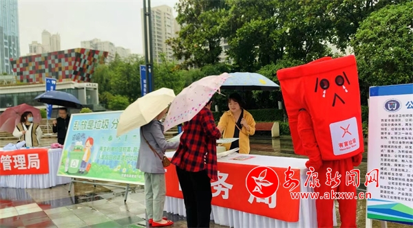 活動當日陰雨綿綿,北辰公園人頭攢動。在一排排豐富多彩的宣傳展板和生活垃圾分類成果展區(qū)前,不少市民駐足觀看和詢問有關情況,工作人員耐心解答并熱情洋溢地宣傳普及生活垃圾分類知識;顒蝇F場還設置有妙趣橫生的環(huán)保游戲,身著環(huán)保標識的“人形玩偶”頻頻與大家互動,在輕松歡樂的氛圍中傳遞環(huán)保理念。