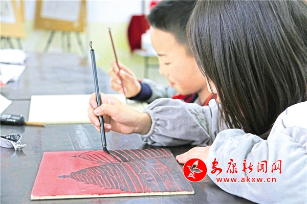 孩子們用刻刀和畫筆留下了校園美麗的風(fēng)景,也銘記著豐富多彩的童年生活。