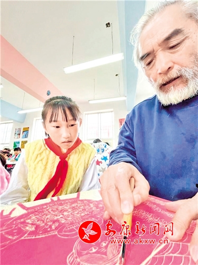 和往常一樣,宋安平早早從安康城區(qū)趕到平利老縣鎮(zhèn),這天是和孩子們約定的每周一次版畫輔導(dǎo)時間,也是孩子們送給自己節(jié)日的一份禮物。在老師的指導(dǎo)下,學(xué)生們用刻刀仔細(xì)雕刻著,畫面上都是他們熟悉的日常生活,上面的每一個人物,都能叫出名字。