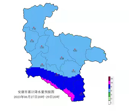 6月27日白天:多云轉陰天;6月27日夜間:全市陰天有陣雨,寧陜、石泉、漢陰、紫陽有雷陣雨并伴有5-6級陣風;6月28日:全市中到大雨,平利南部及紫陽、嵐皋、鎮(zhèn)坪大部有暴雨;6月29日:全市小雨轉多云,平利南部、鎮(zhèn)坪中到大雨轉陰天。u66安康新聞網