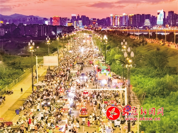 夕陽欲頹,夜幕未至之際,安康東壩漢江大橋下夜市的“煙火氣”開始彌漫開來。9nS安康新聞網(wǎng)