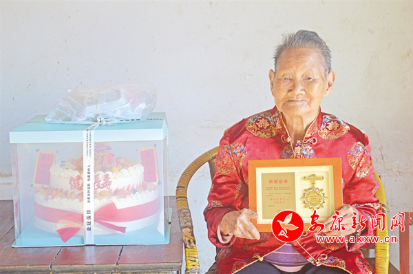 李奶奶看到大家的到來,樂得合不攏嘴。雖然已經(jīng)百歲高齡,但老人思維還比較清晰。聽村里鄰居們介紹,她身子骨很硬朗,走路不需要拐杖,平時偶爾還會一個人出去散步。“能活到百歲,主要是黨的政策好,老了還有錢領(lǐng)(高齡補貼),生活無后顧之憂,子孫輩都有孝心,把我照顧得很好,還有鄰里們的關(guān)心,經(jīng)常陪我聊天。我生活很充實,謝謝你們?yōu)槲疫^生日,真是太開心了!”李奶奶說。