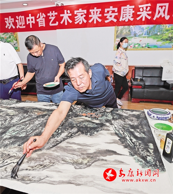9月20日晚,在“心向青山綠水——呂峻濤寫生作品匯報(bào)展暨陜西省第十四屆全國(guó)美展安康寫生采風(fēng)活動(dòng)”筆會(huì)上,近20名中省市書畫名家在安康日?qǐng)?bào)社歡聚一堂,揮毫潑墨,以書言志、以畫寄情,用一幅幅精品力作為書畫愛好者呈上了一場(chǎng)文化藝術(shù)盛宴。LkV安康新聞網(wǎng)
