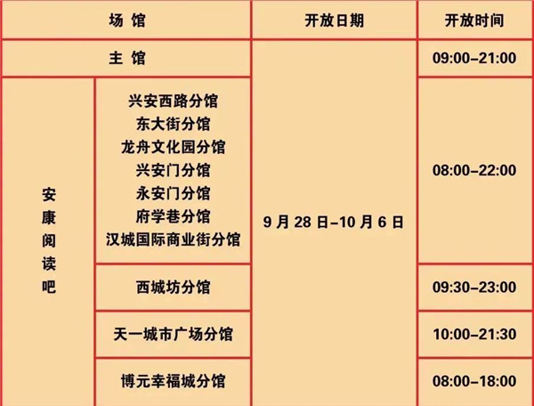 中秋、國慶期間,我市持續(xù)陰雨天氣,為加大文旅惠民力度,豐富文旅服務(wù)供給,提升文旅服務(wù)質(zhì)量,使廣大市民和游客度過一個安定、祥和、愉快的假期。安康市中心城區(qū)各文博場館10月1日至10月6日將適當延長場館開放時間。安康博物館、安康市群眾藝術(shù)館、安康市藏一角博物館開放時間延長至晚19:00。安康市圖書館、安康美術(shù)館開放時間延長至晚21:00。