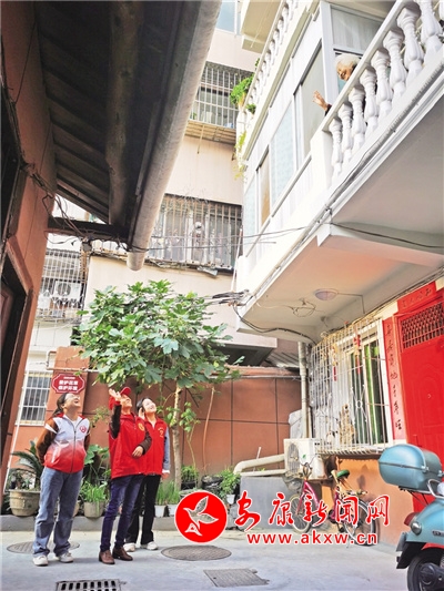 培新街社區(qū)干部走街串巷,開展志愿服務(wù)。