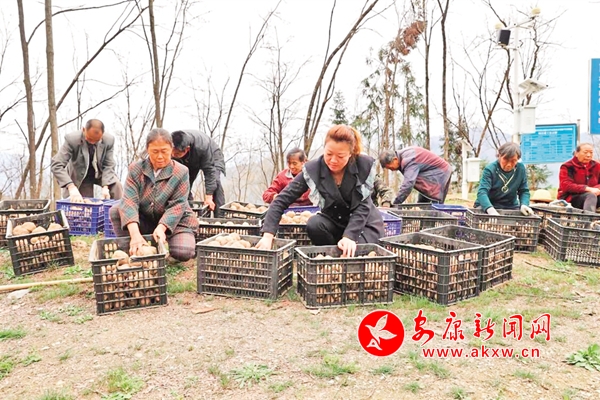 從福建跨省來嵐皋流轉(zhuǎn)土地種魔芋、收魔芋、加工魔芋的黃雪琴,與村民挑選種芋準(zhǔn)備林下栽種。
