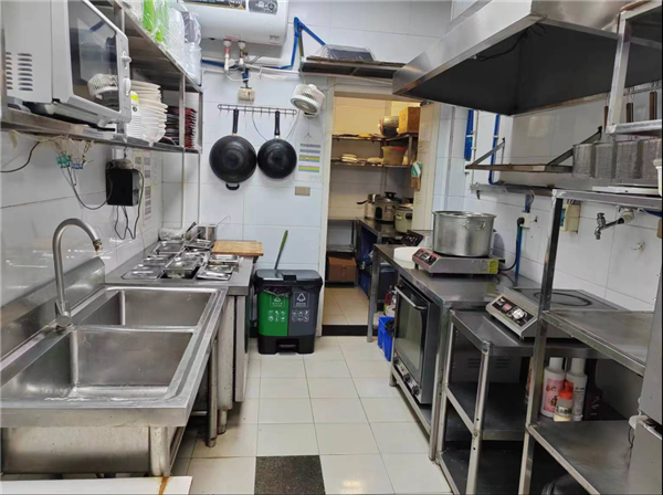 店面衛(wèi)生整潔,布局合理,后廚物品擺放有序、操作規(guī)范。