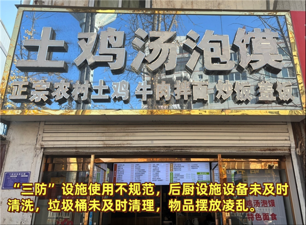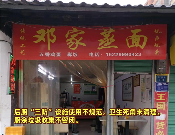 店內(nèi)環(huán)境雜亂,后廚有衛(wèi)生死角,無“三防”設(shè)施。