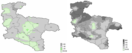 △ 圖3:2月2日08時(shí)-2月3日08時(shí)降水落區(qū)預(yù)報(bào)圖;圖4:2月3日08時(shí)-4日08時(shí)降水落區(qū)預(yù)報(bào)圖