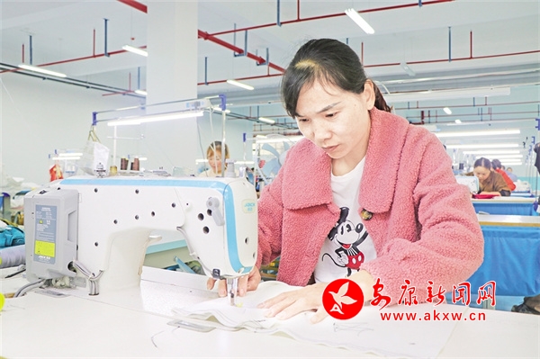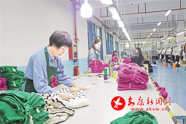 “我在這里做查片、補片。工作了大半年了,工資7000元左右。廠里每天還管三餐。”在家門口拿到比較滿意的工資,這是杜金瓊以前難以想象的好事。她曾在廣東務(wù)工近二十年,稱得上是紡織服裝行業(yè)資深從業(yè)者。得知西北紡織服裝產(chǎn)業(yè)城一期部分企業(yè)投產(chǎn)有大量用工需求,半年前,杜金瓊返鄉(xiāng)工作,并迅速成為廠里的技術(shù)骨干。“技術(shù)含量肯定是有的,但說難也不難,只要肯用心,練習(xí)實踐半年就能上手。”杜金瓊說。
