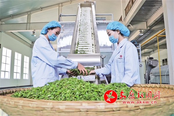 重視茶葉質(zhì)量管控的同時(shí),漢濱區(qū)還積極引導(dǎo)企業(yè)創(chuàng)新研發(fā)茶產(chǎn)品,進(jìn)行深加工、延伸產(chǎn)業(yè)鏈、提升附加值。“我們每年3月10日左右開(kāi)工,早春平均每天收到鮮葉800到1500斤,制出干茶200到300斤,春茶采收50余噸,產(chǎn)值可達(dá)1600萬(wàn)余元,帶動(dòng)1000多人通過(guò)采茶增收3000至5000元。”安康市漢濱區(qū)德潤(rùn)天然富硒農(nóng)產(chǎn)品開(kāi)發(fā)有限公司運(yùn)營(yíng)總監(jiān)陳同磊說(shuō)。2021年,德潤(rùn)公司投產(chǎn)了“年產(chǎn)400噸富硒茶清潔化生產(chǎn)線”項(xiàng)目,這是目前陜南較大容量的殺青生產(chǎn)線和炒干生產(chǎn)線之一,可同時(shí)加工富硒綠茶、紅茶、白茶、黑毛茶等多品類(lèi)茶,極大地豐富了安康富硒茶品種及市場(chǎng),也使茶葉加工溫度控制更加精準(zhǔn),整體口感進(jìn)一步提升。