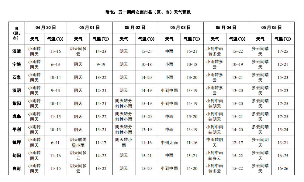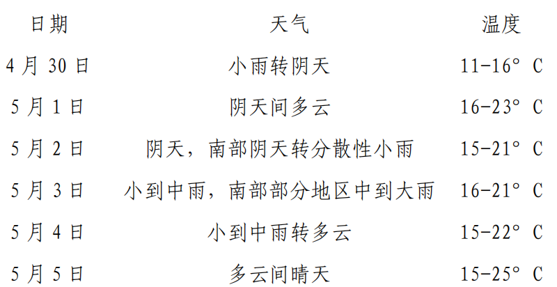 溫馨提示:5月1—2日我市以陰天到多云天氣為主,溫度適宜,空氣質(zhì)量較好,適合外出游玩;3—4日有明顯降水天氣降水過程,需防范降水導(dǎo)致的道路濕滑、低能見度等對(duì)道路交通的不利影響。公眾可及時(shí)關(guān)注最新預(yù)報(bào)預(yù)警信息,合理安排出行時(shí)間。