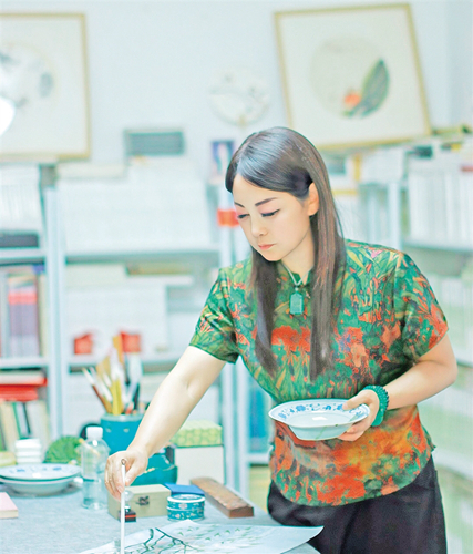 記者:除了詩歌和國畫,您還涉足了石頭畫、皮雕、裝飾畫等多種藝術(shù)形式。想了解一下您平時繪畫通常的尺寸?您認為您的優(yōu)勢在哪里?弱點是什么,如何克服?