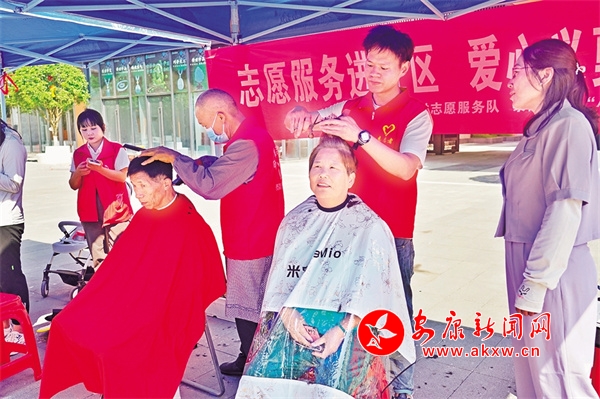 志愿者為社區(qū)老人免費(fèi)理發(fā)。雷超 攝
