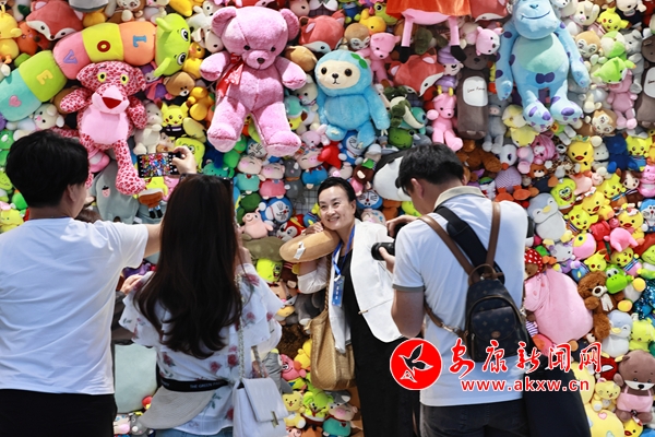 采訪團(tuán)在恒口示范區(qū)毛玩中心拍照打卡。記者 潘潤(rùn)生 攝