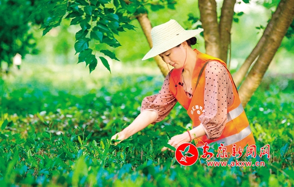 廣佛鎮(zhèn)塘坊村村民在自家茶園里采摘夏秋茶(圖片由陳子帆拍攝)