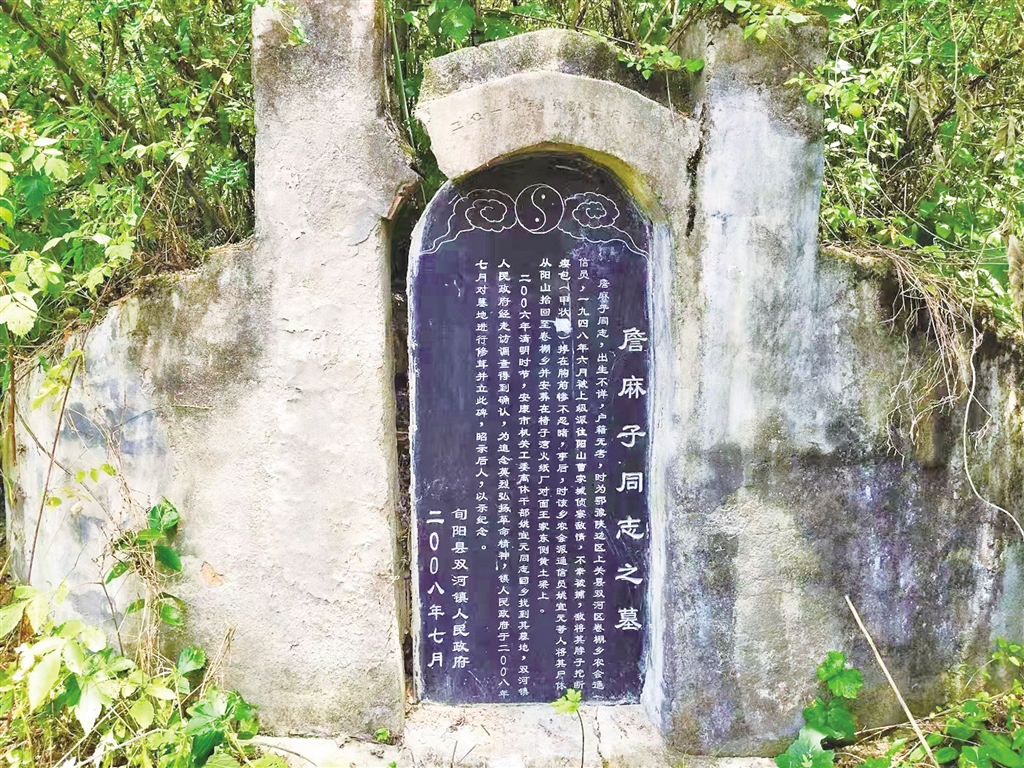 在旬陽(yáng)市雙河鎮(zhèn)卷棚村老火紙場(chǎng),一個(gè)小地名叫做椅子灣的對(duì)面黃土梁上,安葬著一位當(dāng)?shù)卮迕窨诳谙鄠,傳了一輩又一輩,每一輩人都只知道這座無名烈士墓的墓主人,外號(hào)叫“詹麻子”,至于他是哪里人,生于何時(shí),犧牲時(shí)多大,有無兄弟姐妹與妻兒等,現(xiàn)如今仍無人知曉。