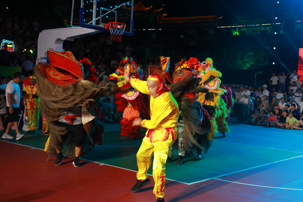 8月27日,賽事已經(jīng)連續(xù)激戰(zhàn)了12個日夜,每一場比賽都讓觀眾們大飽眼福。晚9時左右,隨著第一場比賽的終場哨聲響起,整個廣場的氛圍并沒有因為比賽的結(jié)束而冷卻,反而因為接下來的精彩節(jié)目而更加熱烈起來!赌蠈m雄獅》作為中場休息的特別節(jié)目火熱上演。隨著激昂的鼓點響起,兩只色彩鮮艷、造型威猛的雄獅在舞獅者的操控下,瞬間吸引了所有人的目光。它們時而翻騰跳躍,展現(xiàn)出驚人的靈活與力量;時而憨態(tài)可掬,逗得觀眾捧腹大笑。舞獅者們更是憑借高超的技藝和默契的配合,將雄獅的威猛與靈動演繹得淋漓盡致。