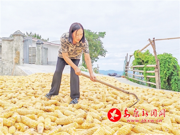 8月29日,在平利縣城關鎮(zhèn)普濟寺村徐家溝生態(tài)種養(yǎng)業(yè)家庭農場,張冬明頂著烈日,正在晾曬玉米棒子。