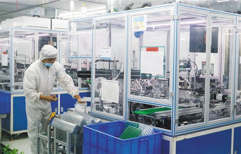 10月12日,在軒意光電生產(chǎn)車間,智能安防、5G通信光學(xué)器件等多條生產(chǎn)線開足馬力,產(chǎn)線整體自動(dòng)化率超過90%。