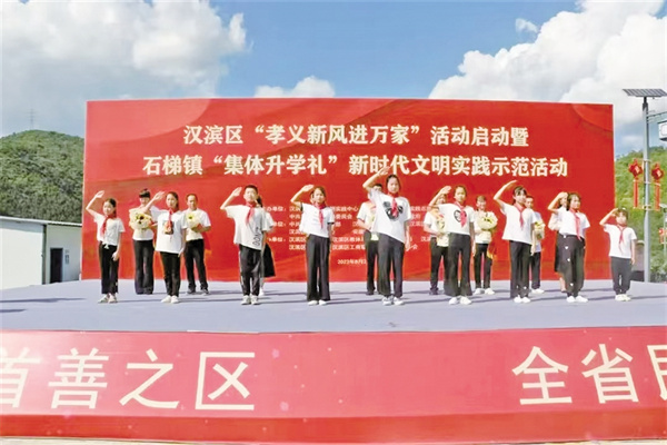 漢濱區(qū)以建設崇德向上幸福安康為目標,以孝義善舉培育工程為抓手,融合理論武裝鑄魂、優(yōu)秀文化傳承、文明建設提質、以文塑旅增效“四大工程”,通過教育引導、教育引領、文明實踐、成果評價、工作保障“五個體系”建設,致力于以“孝”帶“德”、以“義”促“業(yè)”,打造“孝義文化”道德高地,孝義文化的軟實力正逐漸成為促進漢濱社會治理和經(jīng)濟發(fā)展的硬支撐。