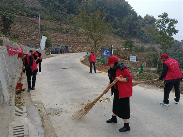 瀛湖鎮(zhèn)王巖村黨員干部、公益崗人員對主干道路進行清掃