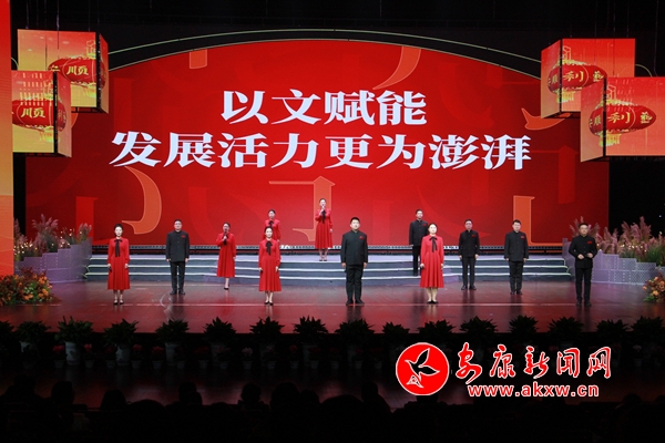 本次團拜會共分為“向光而行”“一路繁花”“萬象更新 ”三個篇章;顒釉陂_場歌舞《我們的新時代》中拉開帷幕,由全市宣傳思想文化系統(tǒng)各單位帶來的舞蹈、快板舞、歌舞串燒、小品、民歌聯(lián)唱等各類精彩節(jié)目輪番上演,宣講《在習(xí)近平文化思想指引下》、情景劇《高高的山上》等特色節(jié)目,生動展示了安康牢記囑托、砥礪奮進的生動局面;歌曲串燒《最初的夢想》《一起出發(fā)》、情景聯(lián)唱《我愛我的家》鼓舞大家奔向安康文化事業(yè)發(fā)展新征程,共同創(chuàng)造更加美好的明天;小品《老劉過生》《管不管》、情景音詩畫《傳承》、情景歌舞《村BA我的主場》等節(jié)目展示了我市廣大干部群眾扎根基層顯擔(dān)當(dāng)、開展傳統(tǒng)文化保護以及發(fā)展縣域經(jīng)濟等方面的新做法、新成效。團拜會現(xiàn)場高潮迭起、掌聲不斷,在合唱《歌唱祖國》中落下帷幕。