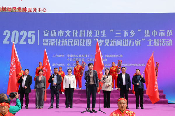 本網(wǎng)訊(通訊員 賈學(xué)林)文化惠民添活力,孝義新風(fēng)潤(rùn)安康。3月18日,2025年安康市文化科技衛(wèi)生“三下鄉(xiāng)”集中示范暨深化新民風(fēng)建設(shè)“孝義新風(fēng)進(jìn)萬(wàn)家”主題活動(dòng)在漢陰縣澗池鎮(zhèn)舉行。市委常委、宣傳部部長(zhǎng)陳蓮宣布活動(dòng)啟動(dòng)并向“三下鄉(xiāng)”服務(wù)小分隊(duì)授旗。“三下鄉(xiāng)”市級(jí)成員單位、漢陰縣有關(guān)負(fù)責(zé)同志參加活動(dòng)。