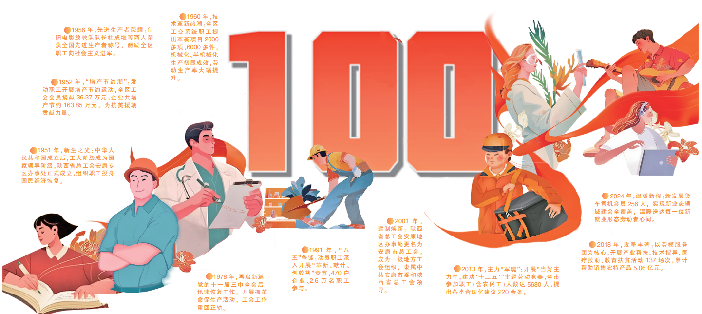 2025年,是全國總工會成立100周年,作為工人階級和廣大勞動群眾的堅強后盾,全國總工會為我國的社會進(jìn)步和經(jīng)濟發(fā)展做出了不可磨滅的貢獻(xiàn)。安康工運事業(yè)從1925年漢水畔第一聲“勞工萬歲”的吶喊,到深度參與三線建設(shè)、脫貧攻堅、生態(tài)經(jīng)濟等重大戰(zhàn)略,再到新時代百萬職工投身幸福安康建設(shè)的鏗鏘步履,始終與黨的事業(yè)血脈相連,與城市發(fā)展同向同行。