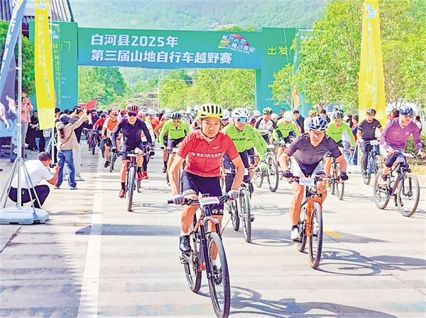 5月1日,白河縣“相約天寶·挑戰(zhàn)極限”第三屆山地自行車越野賽在天寶農園景區(qū)舉辦,來自廣東、廣西、四川、湖北等7省市的160余名男女運動員和騎行愛好者參與其中。朱明富 攝