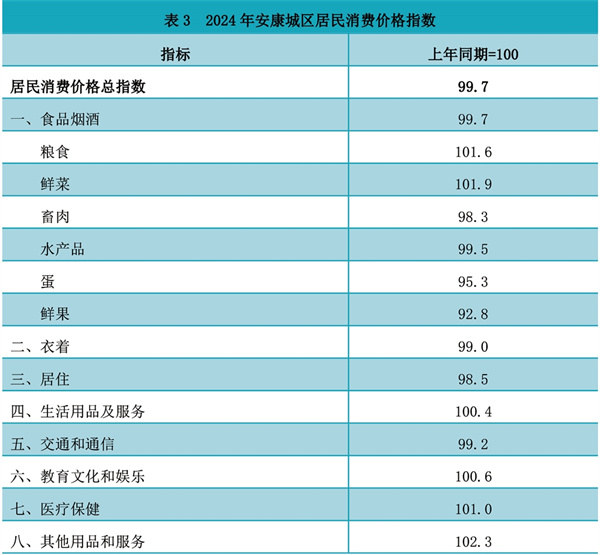2024年,安康城區(qū)居民消費(fèi)價(jià)格比上年下降0.3%。