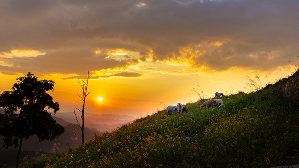 羊群在石泉縣饒峰鎮(zhèn)牛羊河村山上吃草。賈自龍 攝