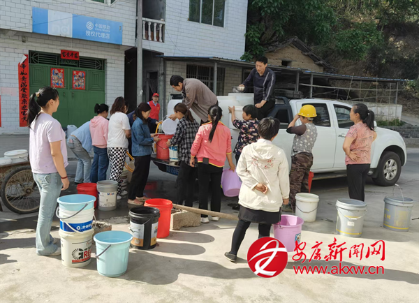 5月19日,平利縣長(zhǎng)安鎮(zhèn)積極應(yīng)對(duì)旱情,組織常安鄉(xiāng)建公司開(kāi)展送水入戶行動(dòng),確保村民飲水安全。圖為鎮(zhèn)村干部頂著烈日挨家配送。胡鈴鈴 攝受高溫干旱天氣影響,漢陰……