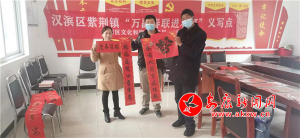 本網(wǎng)訊(通訊員 宮再朋 張艷)1月27日,在紫荊鎮(zhèn)各村文化活動(dòng)室里,來自各村的書法愛好者們揮毫潑墨,為村民們義寫春聯(lián)。一副副飄著墨香,飽含著濃濃年味、美好……