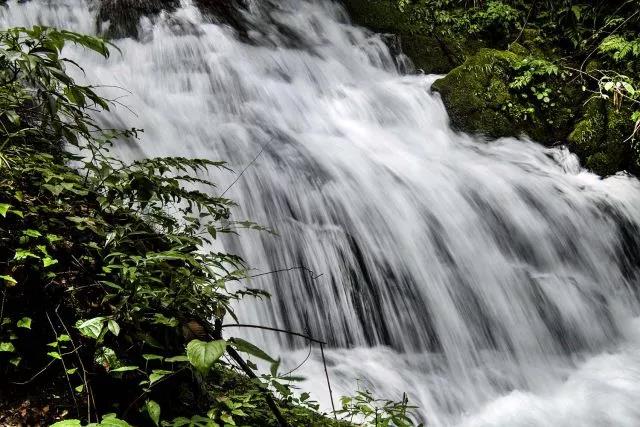 7月7日拍攝的峽谷里似玉帶的瀑布。新華社記者陶明 攝在巴山深處的陜西省平利縣八仙鎮(zhèn)靛坪村,有一處長(zhǎng)約近10公里的峽谷河流,鑲嵌著120余個(gè)常態(tài)瀑布和季節(jié)性瀑布……
