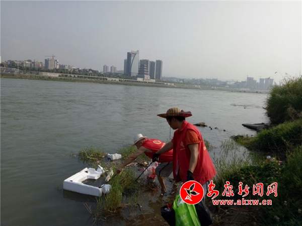 安康新聞網(wǎng)訊(實(shí)習(xí)記者 唐正飛 通訊員 王宗梅 林超 )8月17日天蒙蒙亮,漢江河岸旁除了零零星星的一些晨練市民,在水岸草叢處,身著紅色志愿服裝的海燕和她的隊(duì)友們?cè)谇宄旱暮铀骋r下,格外顯眼。每天從早上6點(diǎn)起,大北社區(qū)居民海燕和她的隊(duì)員們就開(kāi)始了一天的河岸垃圾打撈護(hù)河工作,從水西門到暴家巷河段,海燕和她的隊(duì)友們一趟走下來(lái)要花近1個(gè)小時(shí),盡管是“三伏”天,海燕和她的隊(duì)員每天都要走一趟。
