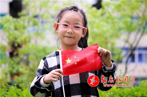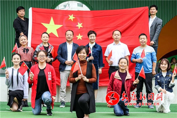 各班還分別設(shè)計了不同造型與國旗合影,表達(dá)對祖國母親的祝愿!
