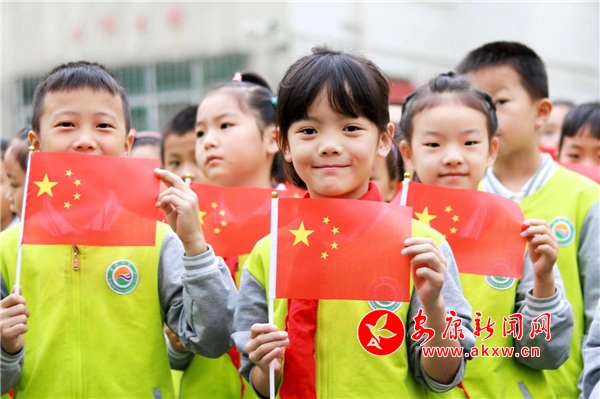 安康新聞網(wǎng)訊(通訊員 張慶 胡開勇 劉雯)9月30日下午,為慶祝建國69周年,紫陽小學(xué)全體師生開展了“我與國旗合個影,我對祖國說句話”主題活動。