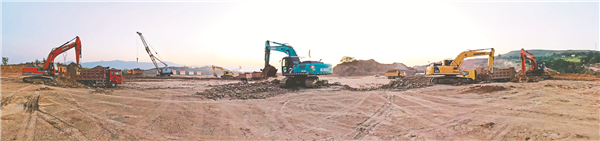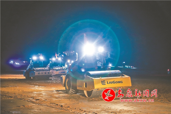 安康新聞網(wǎng)訊(記者 吳單 潘潤生)近200臺(tái)翻斗車來回穿梭運(yùn)送土石方,重達(dá)20噸的吊錘反復(fù)被大型強(qiáng)夯機(jī)從幾十米高空拉起、拋下,發(fā)出聲聲巨響,百米之外仍能感受到夯地的震動(dòng)感。腳手架上、交通路口,工人們有條不紊地進(jìn)行著作業(yè)、指揮著交通……夜幕下的機(jī)場施工現(xiàn)場一片繁忙。