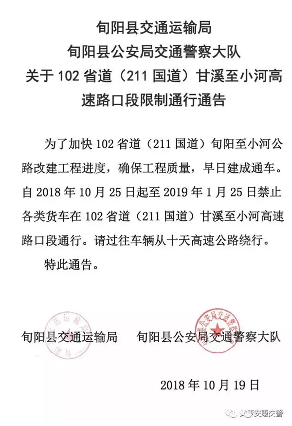 關(guān)于102省道(211國道)甘溪至小河高速路口段限制通行通告