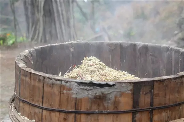 白河農(nóng)村有釀酒的習(xí)慣,都要將地里甜桿收回來(lái),剝皮用刀切之,或者粉碎,把角子放入粉碎桿然后攪拌,然后放入地窖,向陽(yáng)坡背水地埋之,井口封緊,半個(gè)月以后利用鐵桿插入地窖,辨別是否發(fā)酵,在冬天,為了保證發(fā)酵時(shí)的溫度,再放到地窖的灰眼里。上面蓋上破棉衣一類的東西?揪剖莻(gè)技術(shù)活。弄不好烤出來(lái)的就是“尾子水”,清淡沒有酒味。有時(shí)可能是燒鍋酒,有股焦苦的味道。