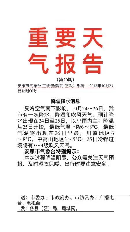 溫馨提示:本次降溫明顯,公眾需關注天氣預報,及時添衣保暖,注意出行完全!iQL安康新聞網(wǎng)