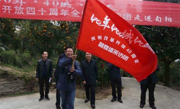 旬河入漢幾道彎,朝陽初灑太極城。10月24日,"40年 40城 40人"西部網(wǎng)慶祝改革開放四十周年全媒體采訪團來到了旬陽,在呂河鎮(zhèn)冬青村劉永濤的農(nóng)家小院里,采訪團代表魏永賢從旬陽縣委常委、宣傳部部長邱德剛手里接過團旗,開啟了對太極城改革開放以來發(fā)展成就的探尋之路。