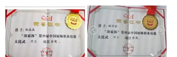 兩人均獲得廚師技能技藝大比武刀工項(xiàng)目金獎(jiǎng)