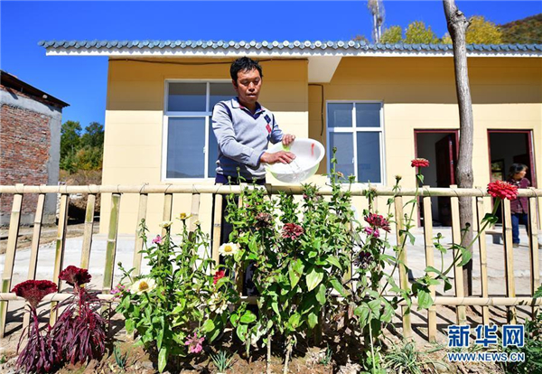 10月29日,工人在漢濱區(qū)茨溝鎮(zhèn)西溝村的輕鋼裝配式房屋頂上安裝屋脊瓦。 新華社記者邵瑞攝