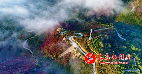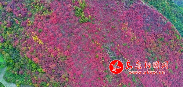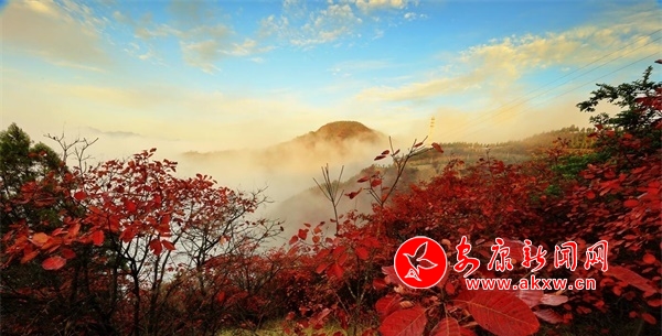 安康新聞網(wǎng)訊(通訊員 黃秀琴 李亞) 深秋時(shí)節(jié),霜降前后,漫山遍野的紅葉讓白河的一座座山巒變成一幅色彩斑斕的山林畫卷。從溝谷到山腰,從山腰到山頂,大自然用它神奇的畫筆盡情涂抹,畫出了一幅漫山紅遍層林盡染的壯觀景象,令人沉醉其中,流連忘返。放眼望去,緋紅、淺紅、深黃漫山遍野,還有層層綠色點(diǎn)綴其中,藍(lán)天相映,白云相伴,云霧繚繞,村舍儼然,好一幅醉人的紅葉美景圖。有詩(shī)贊曰:“秋山映霞一川紅,落葉逐流兩岸風(fēng)。忽如一夜風(fēng)霜降,猶似畫上粉墨傾。”
