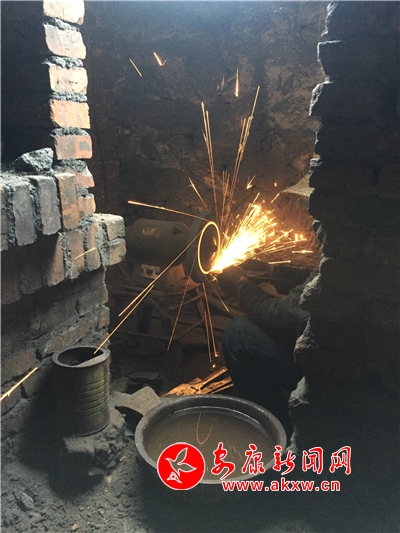“那也行。”黃師傅接過祝工手中的風(fēng)鎬頭和洋鎬,逐個(gè)放入火爐中。“今天能打好嗎?明早一上班就要用。”祝工又從蛇皮袋取出一把銹跡斑斑的菜刀說:“這把菜刀買了也沒用幾次,鈍的很,磨也不行,請(qǐng)你幫忙看下。”接過刀,黃師傅看了看說:“刀口太厚了,用砂輪打磨一下就好了。”話畢轉(zhuǎn)身回到店內(nèi),出來時(shí)手里拿著一個(gè)砂輪,“你拿去用吧!”祝工問多錢,黃師傅說:“算了,不要錢,你拿去用吧!放在店里閑著也是閑著。”轉(zhuǎn)身取出火爐中燒得通紅的風(fēng)鎬頭,掄起鐵錘鍛打起來。經(jīng)過鍛打、開尖、入水、再入火爐煅燒,入水出水間完成淬火,風(fēng)鎬頭、洋鎬處理好了。